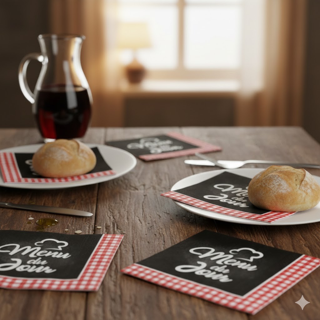 Qu’il s’agisse d’un déjeuner improvisé ou d’un dîner thématique, les serviettes "Menu du Jour" sont l'accessoire indispensable pour signer votre décoration avec goût et authenticité.