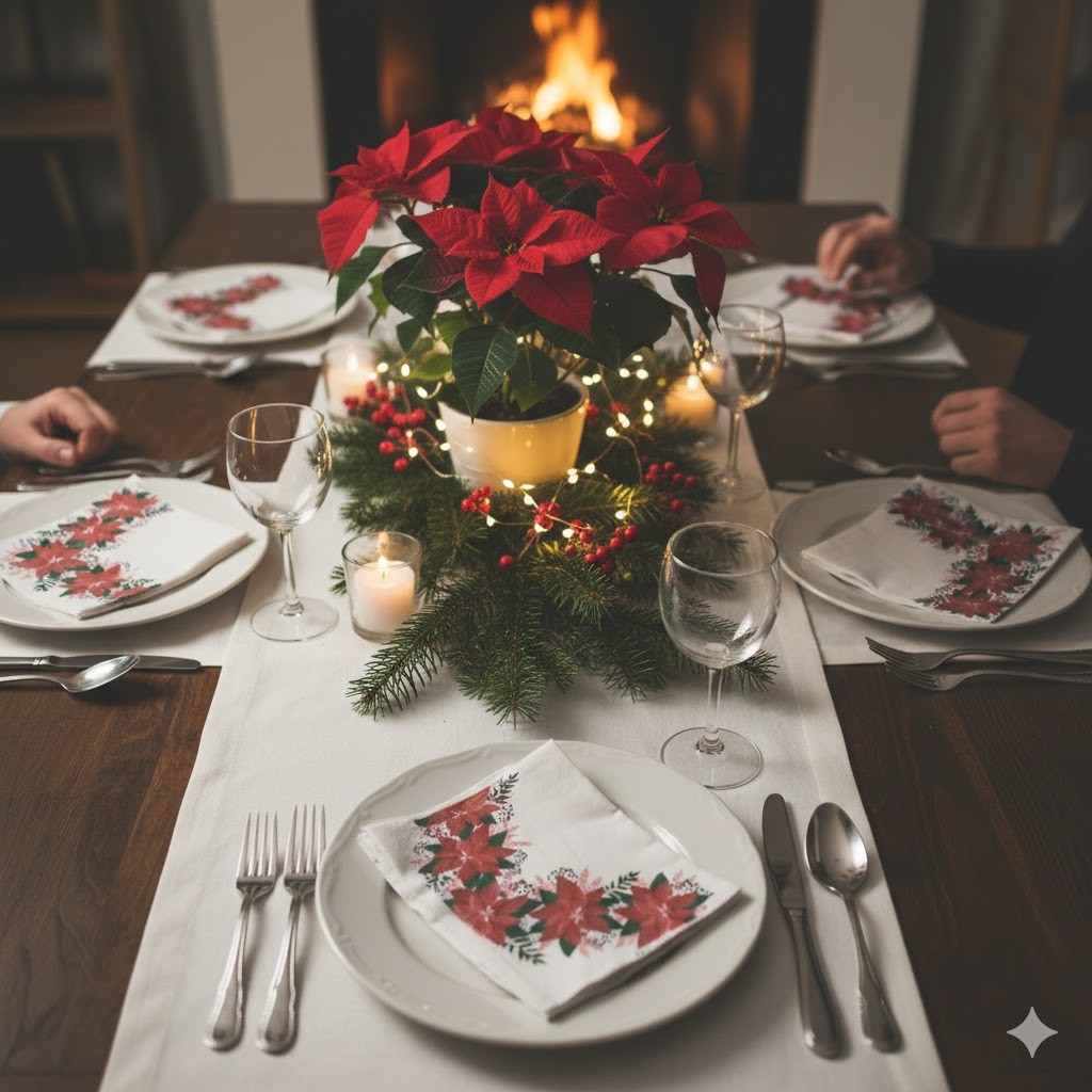 Invitez la magie des fêtes à votre table avec l'élégance intemporelle du Poinsettia.
