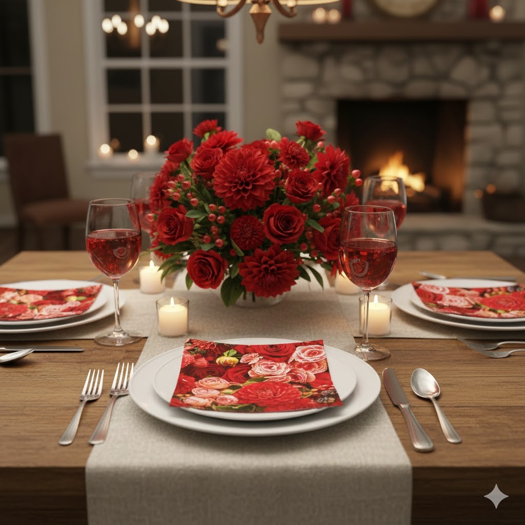 Ces serviettes arborent un imprimé floral dense et chaleureux, idéal pour apporter une touche d'élégance à vos réceptions.