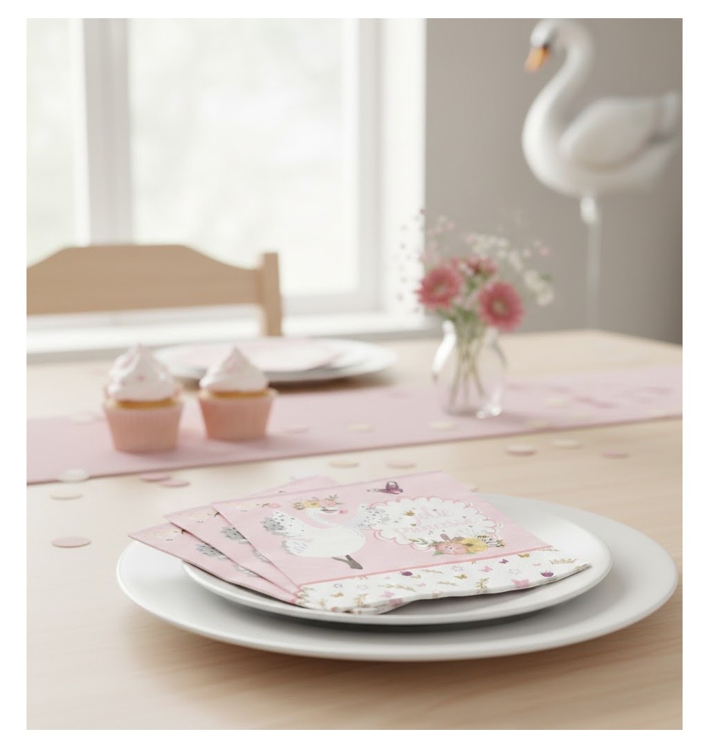 Ces serviettes en papier séduisent par leur univers doux et enchanteur, décliné dans des tons pastel subtils. Sur un fond rose poudré, les illustrations délicates apportent une atmosphère légère et rêveuse, idéale pour créer une table harmonieuse et pleine de douceur.