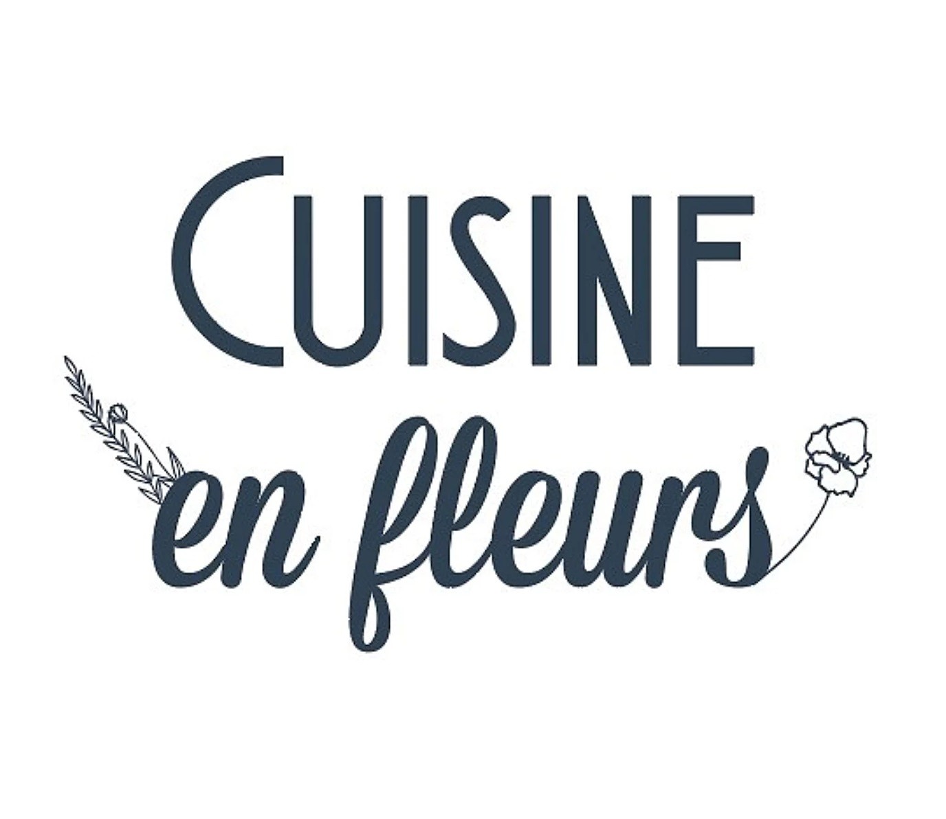 Motif raffiné avec poules fleuries et inscription Cuisine en fleurs