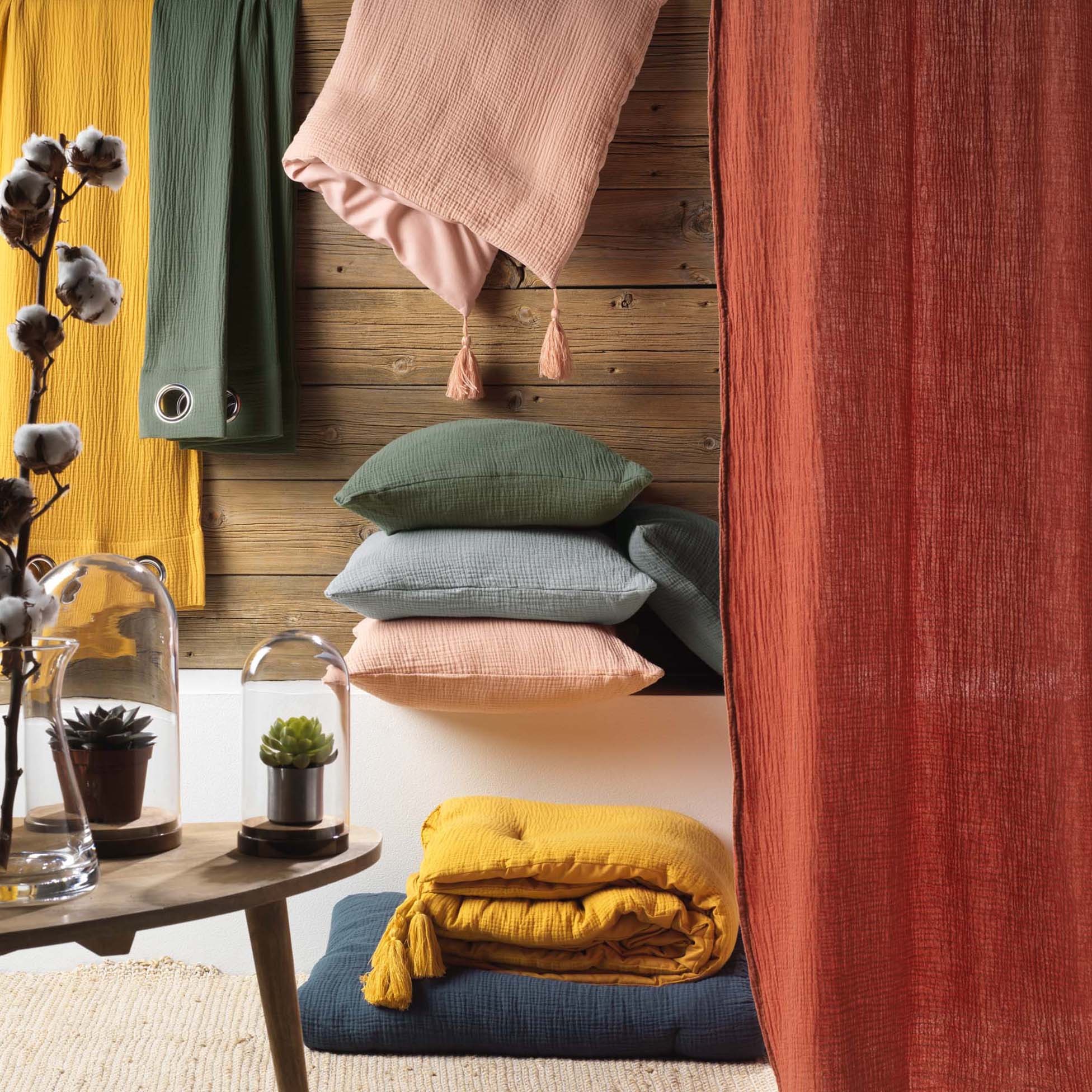 Par son jolie effet gauffré sa qualite 100% coton et sa douceur incomparable la gaze de coton est un produit tres facile a vivre souple respirant qui possède une apparence légèrement froissée.