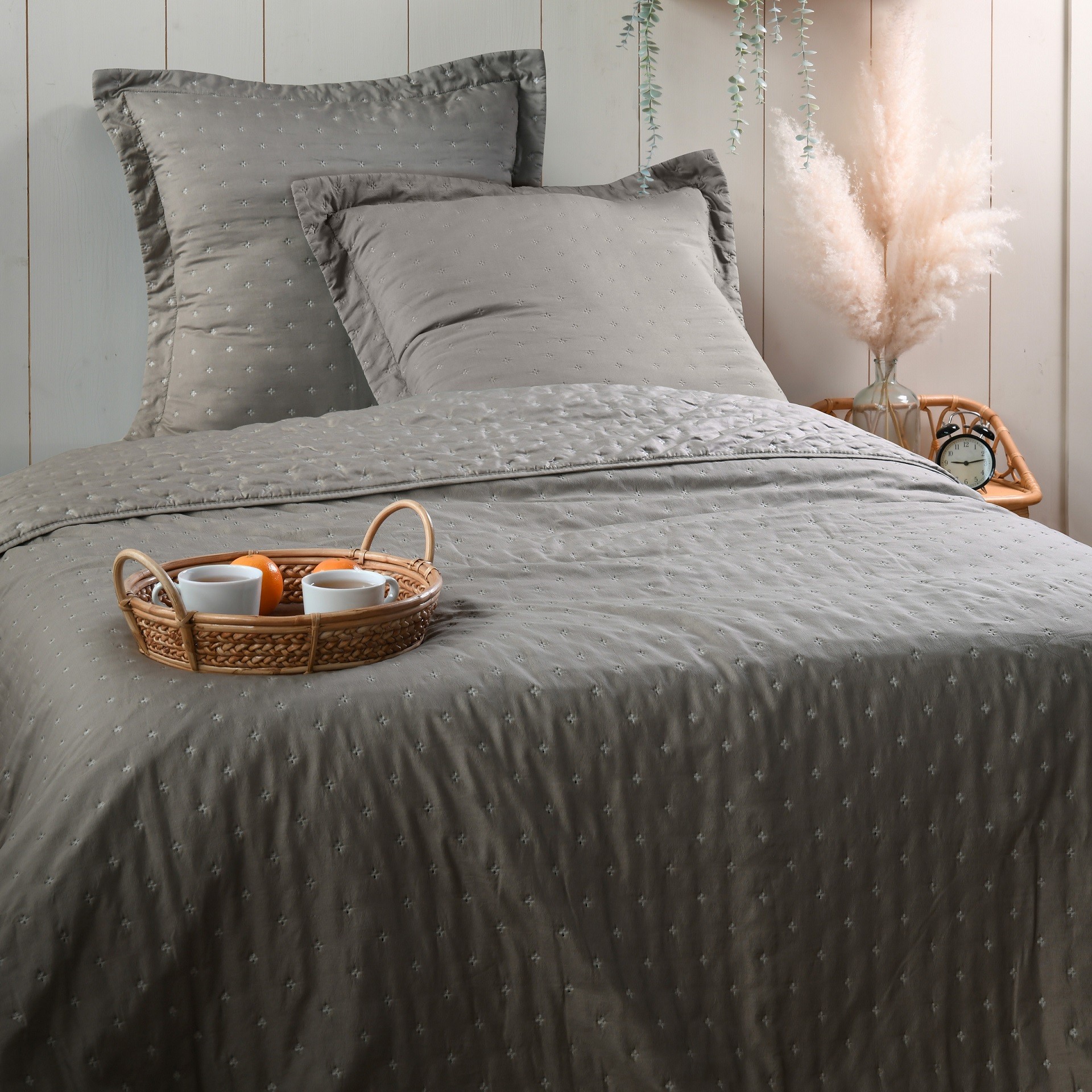 Couvre lit + taies 220 x 240 cm Chloé taupe