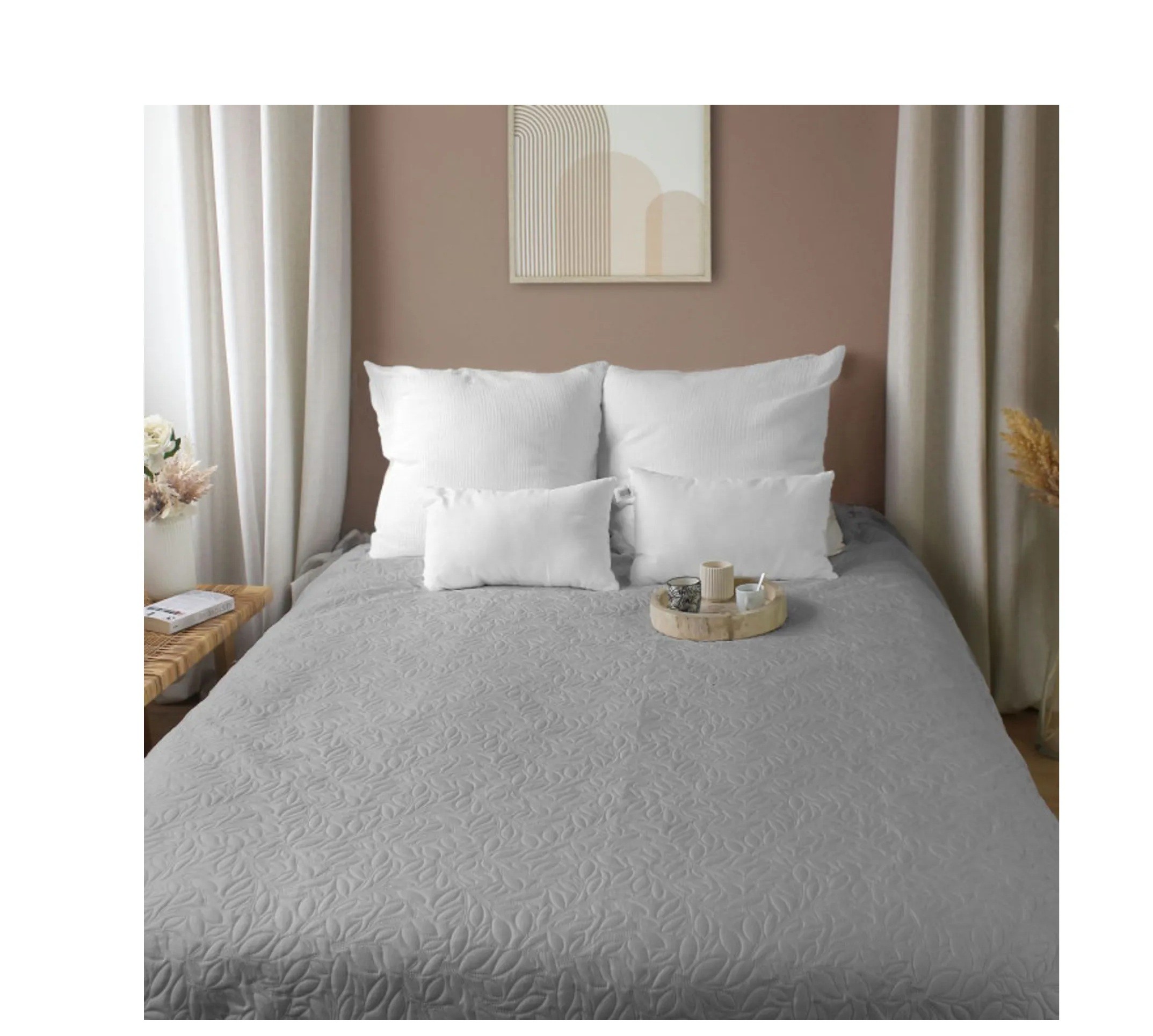 Son motif matelassé par ultrason réalisé sans couture crée un relief délicat et homogène qui habille instantanément le lit.