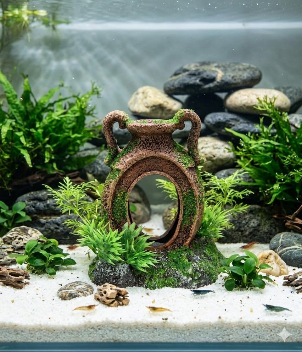 - Décoration aquarium amphore avec cachette