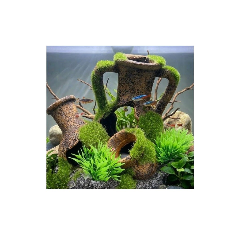 Apportez du relief et une ambiance naturelle à votre aquarium avec cette décoration composée d’amphores effet mousse. Ses ouvertures permettent aux poissons de circuler facilement et offrent des cachettes rassurantes pour leur bien-être