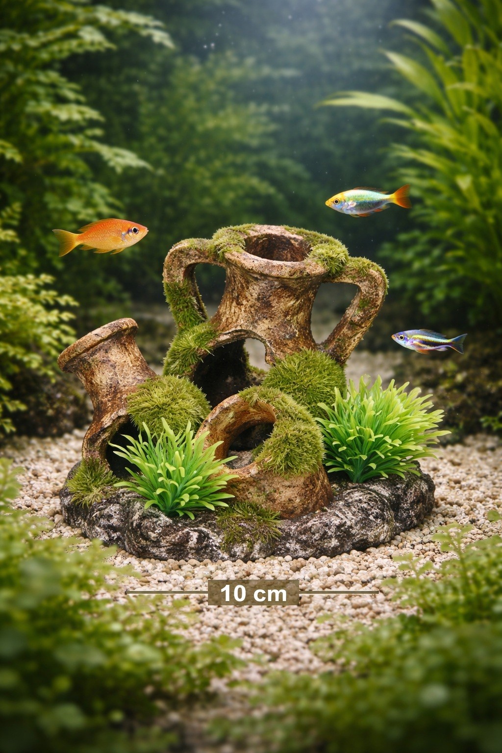 Transformez votre aquarium en véritable décor aquatique naturel grâce à cette décoration en forme d’amphores végétalisées. Son effet mousse réaliste apporte une touche authentique tout en créant un environnement stimulant et sécurisant pour les poissons.