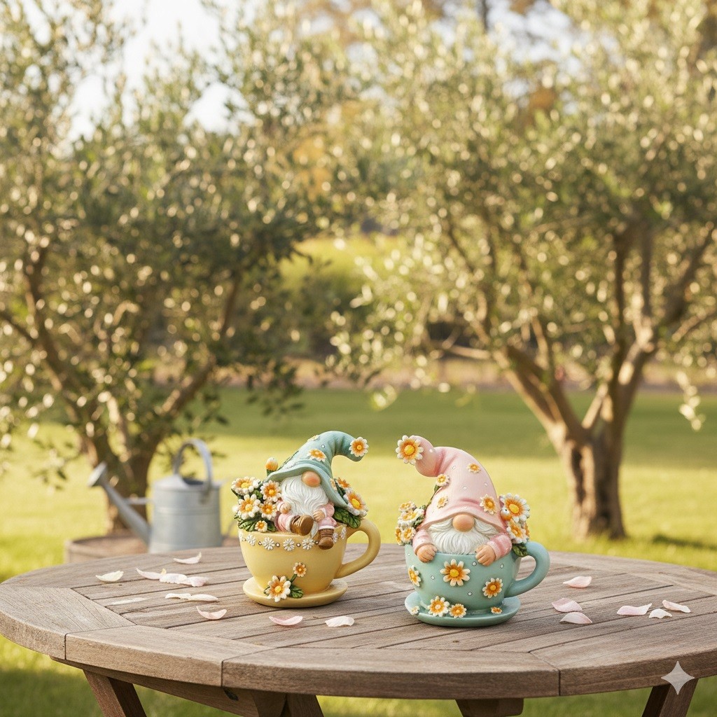 Lot de 2 décorations nains de jardin dans une tasse