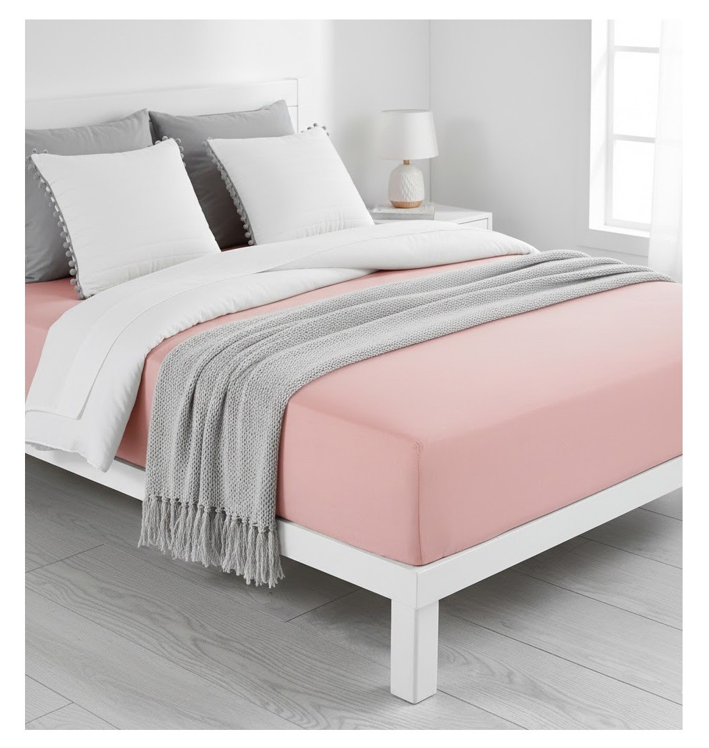 Apportez douceur et élégance à votre literie avec ce drap housse en jersey pur coton coloris rose dragée.
