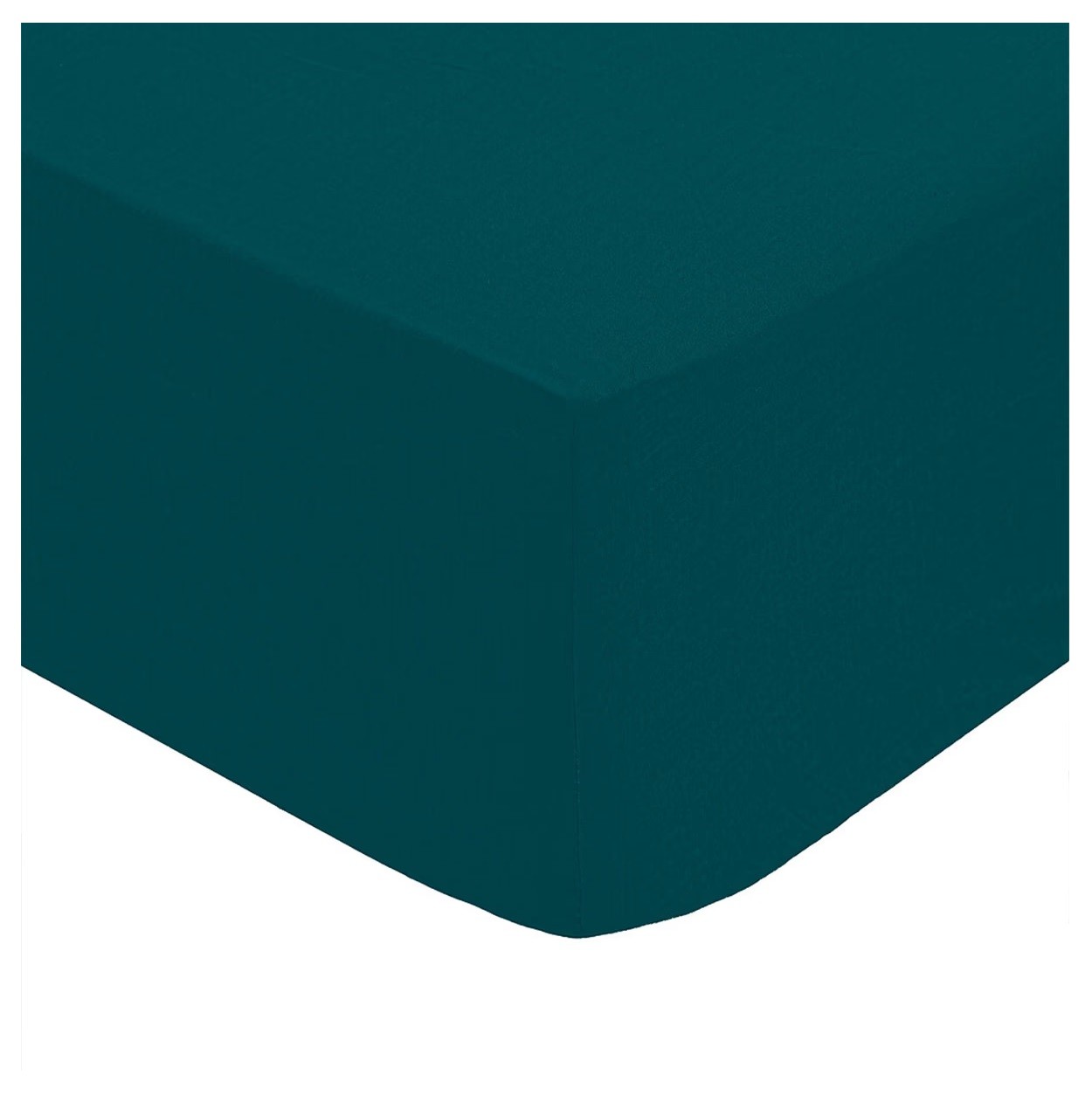 Drap housse percale de coton uni 140 x 190 cm Harmonie bleu egeen
