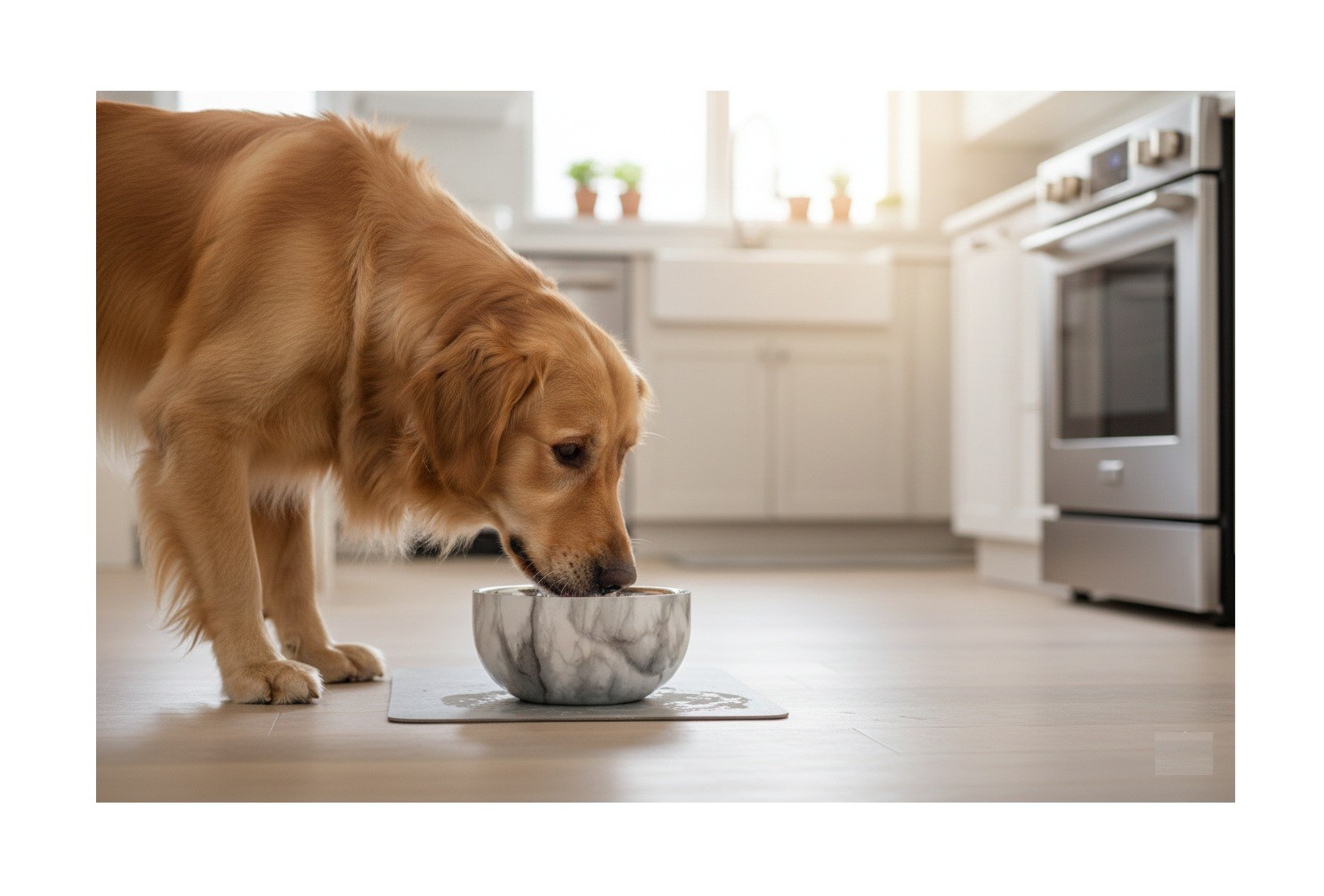 Gamelle Oase ronde pour la nourriture et l’eau au design élégant effet marbre. Conçue pour un usage quotidien elle associe esthétique moderne et fonctionnalité pour le confort de votre chien.