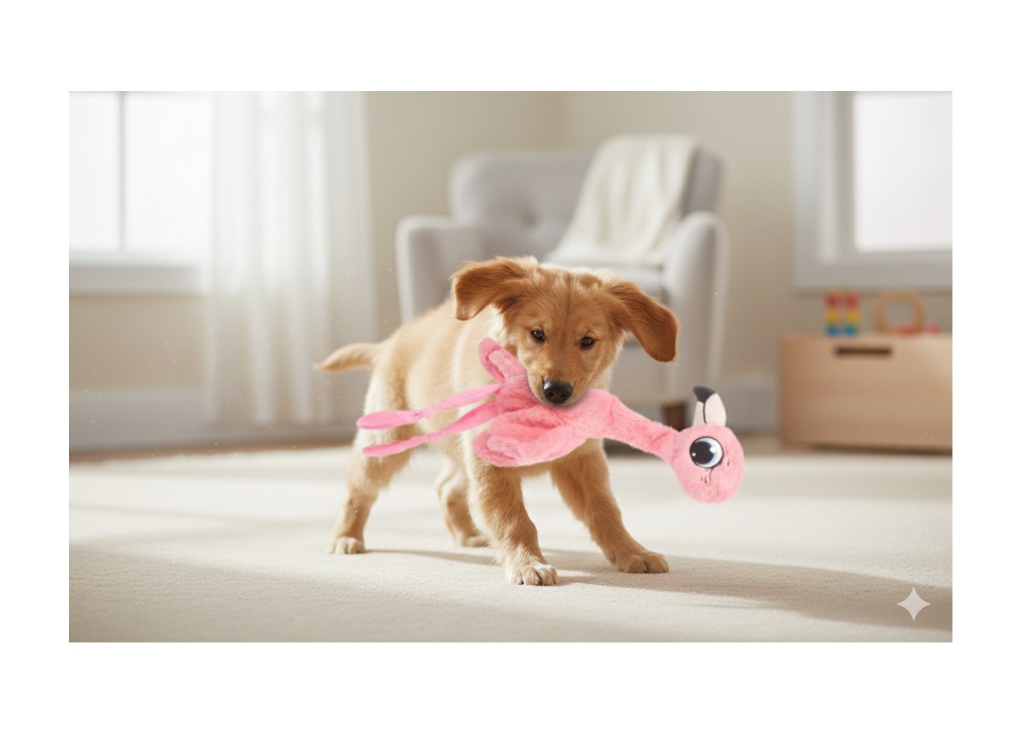 Faites la connaissance de Minga le flamant rose en peluche qui apportera une touche de fantaisie aux moments de jeu de votre chien 🦩🐾