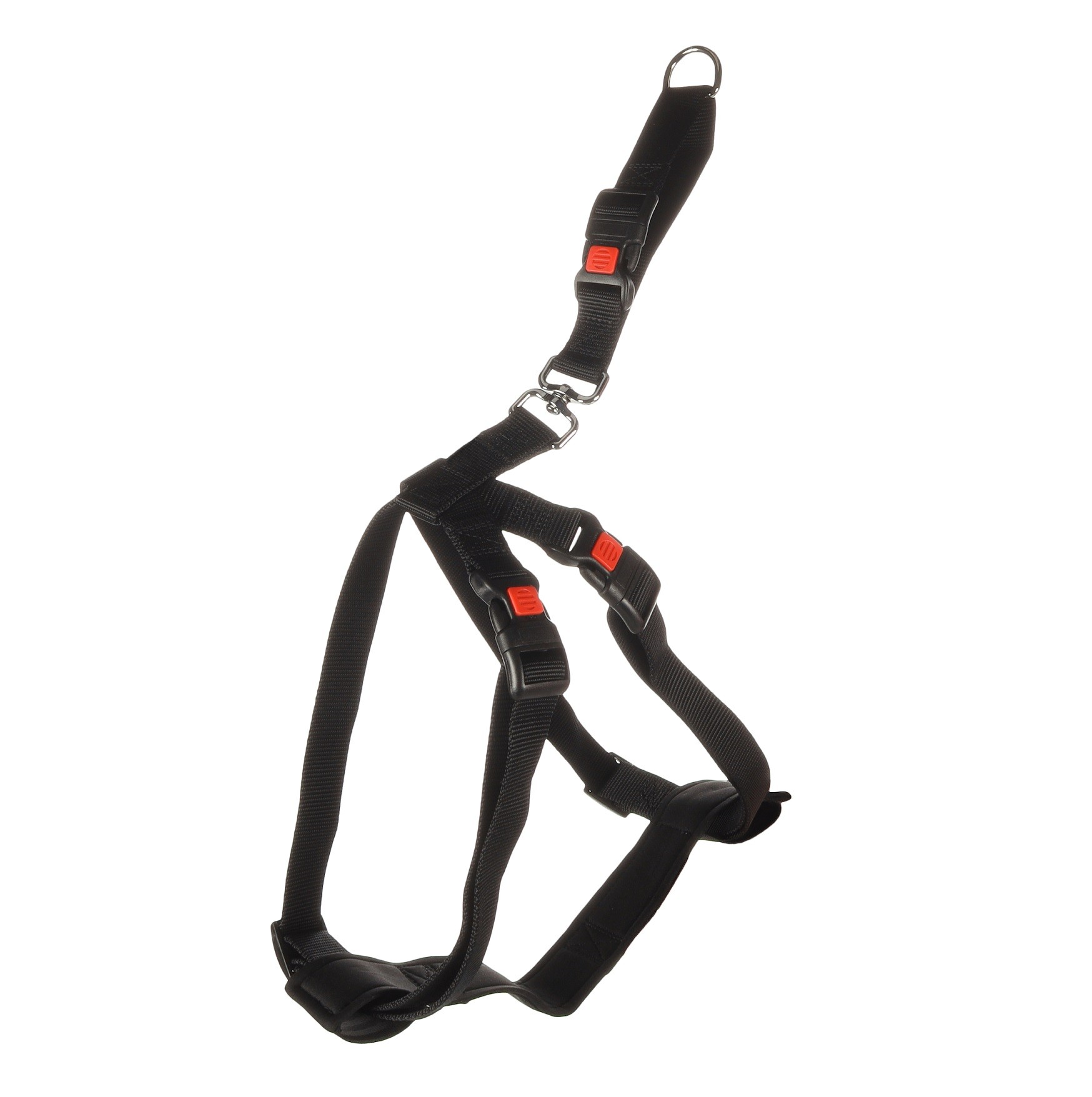 Polyvalent il peut aussi être utilisé comme harnais de promenade en ville ou en forêt grâce à son anneau pour laisse.