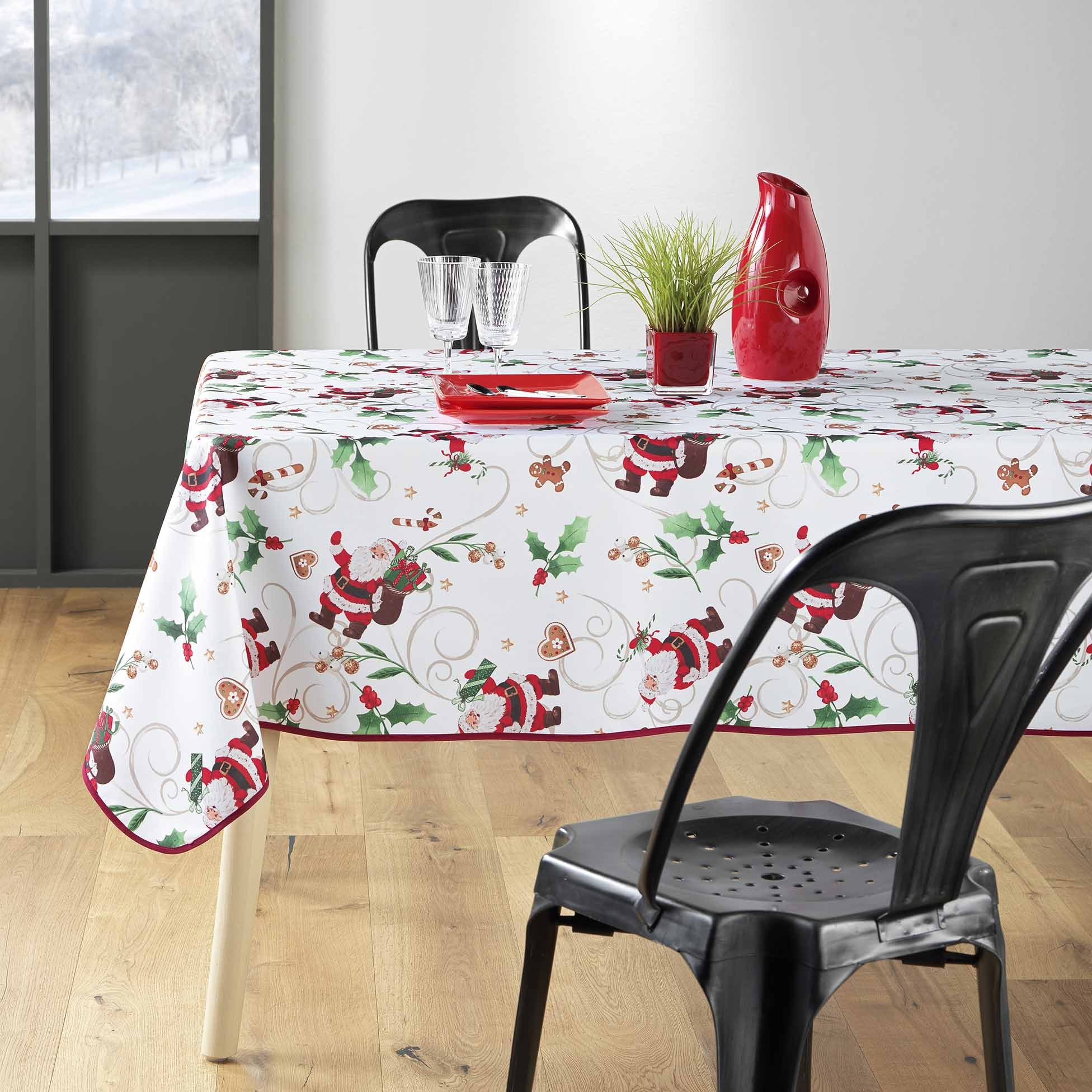 Nappe rectangle 150 x 240 cm Pere Noel enchante blanc