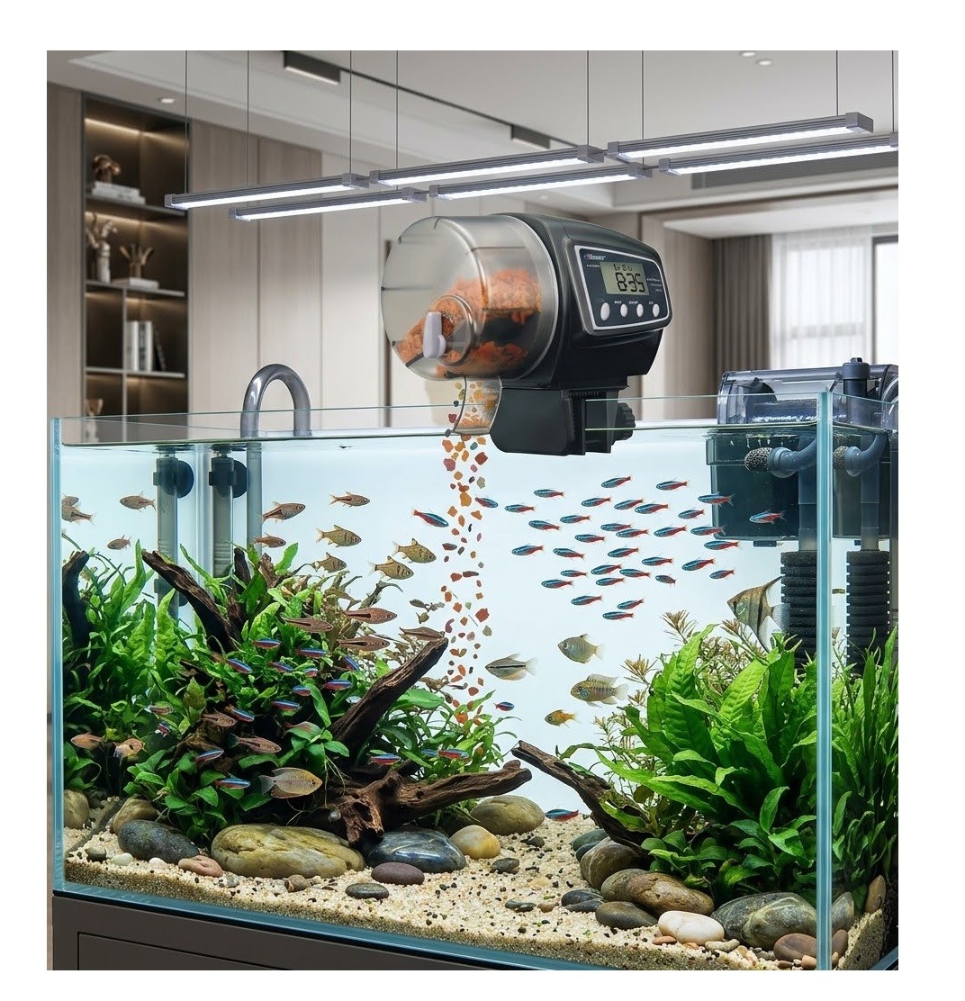 Idéal pour les vacances, les séjours prolongés ou les propriétaires occupés, ce distributeur automatique garantit que vos poissons ne manquent jamais de nourriture, tout en simplifiant votre entretien quotidien.