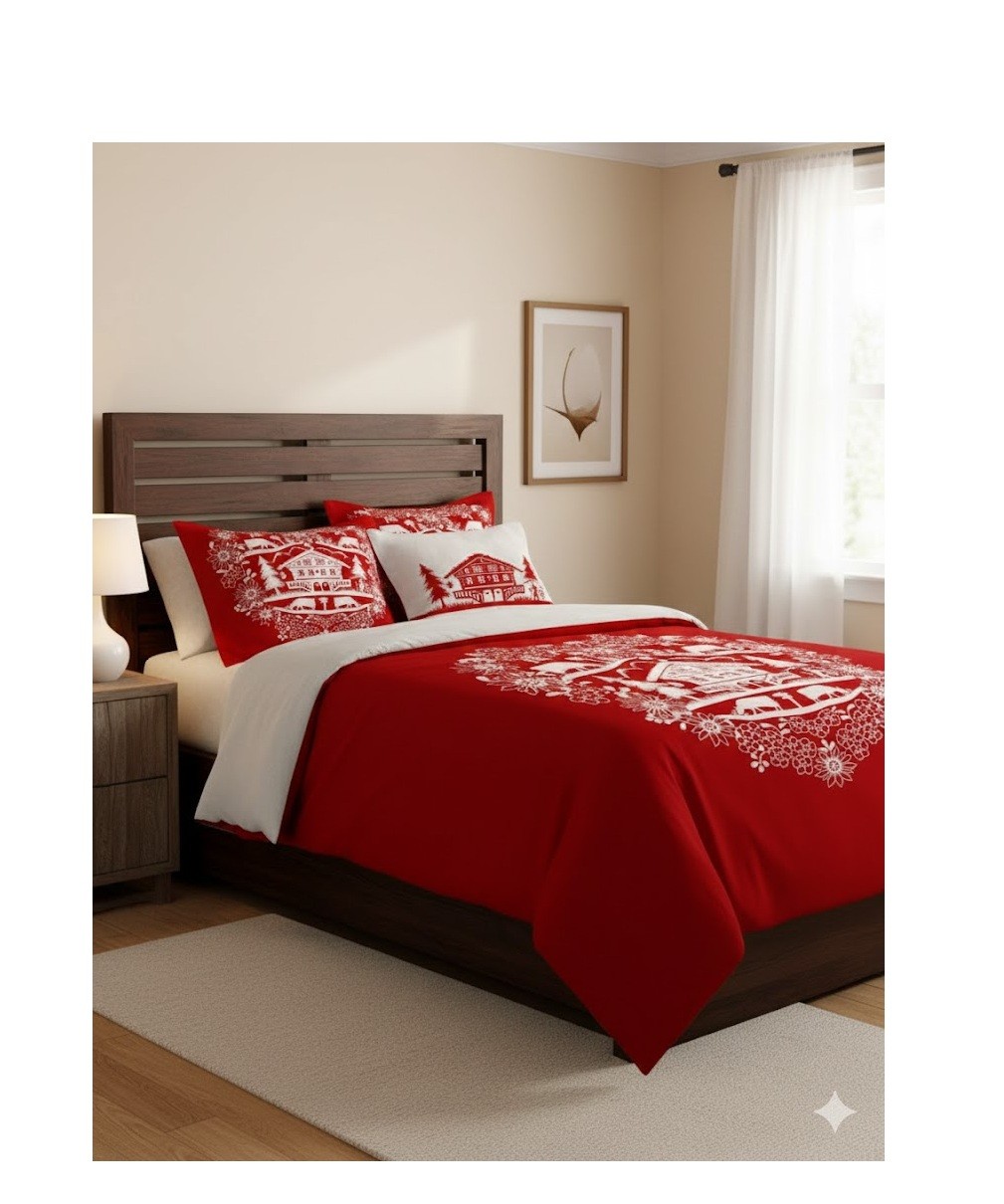 Parure de lit 220 x 240 cm Chalet de Valloire rouge