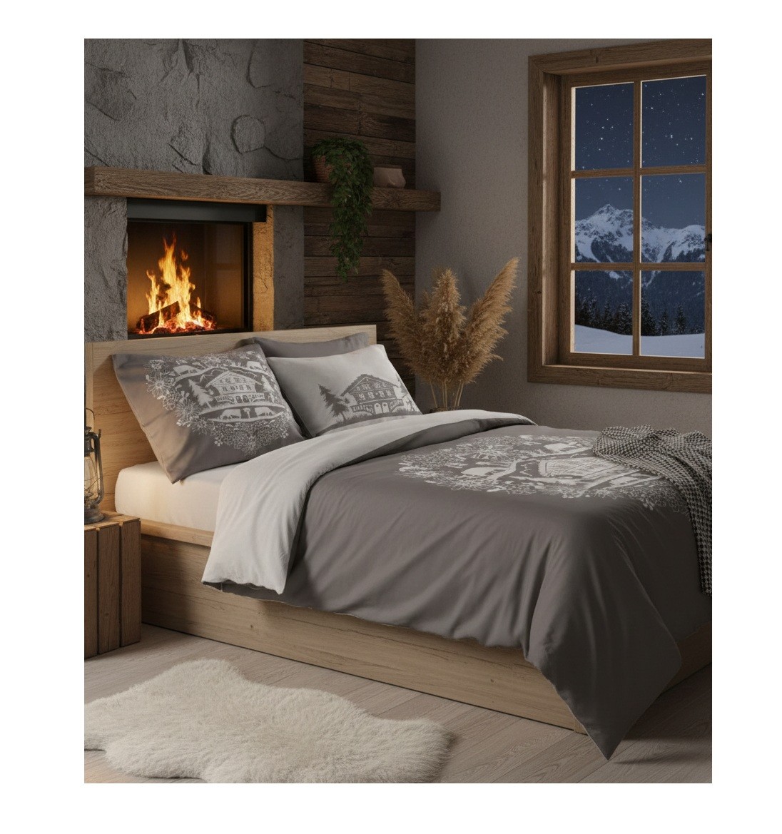Parure de lit 220 x 240 cm Chalet de Valloire taupe
