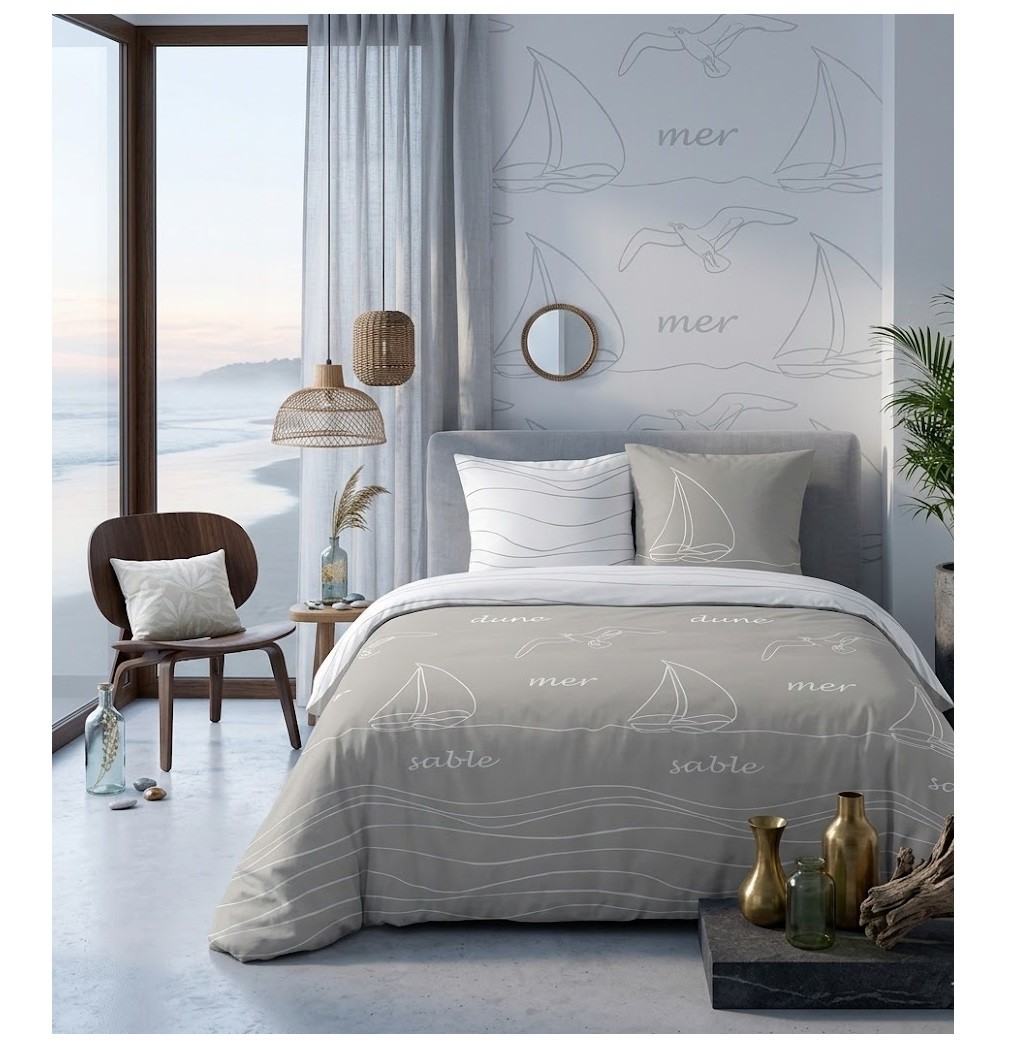 Offrez à votre chambre une atmosphère naturelle et apaisante avec la parure de lit 240x220 cm Terre et Mer couleur beige.