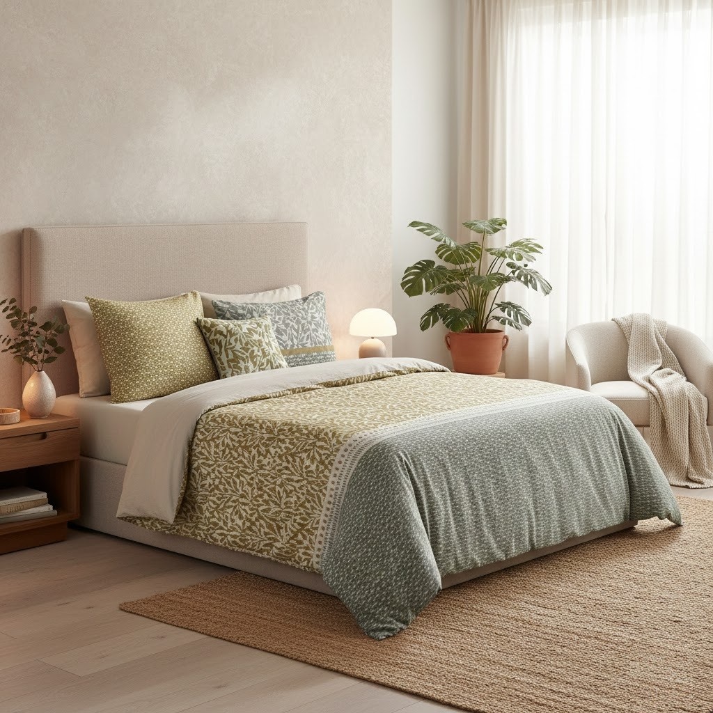 Laissez entrer la douceur de l’air marin dans votre chambre avec la parure de lit EMBRUNS. Inspirée des paysages côtiers et des balades en bord de mer elle associe des motifs délicats et des teintes naturelles pour créer une atmosphère apaisante et élégante. Ses nuances de vert sauge de beige et d’ocre rappellent les dunes la végétation maritime et la lumière douce des rivages.