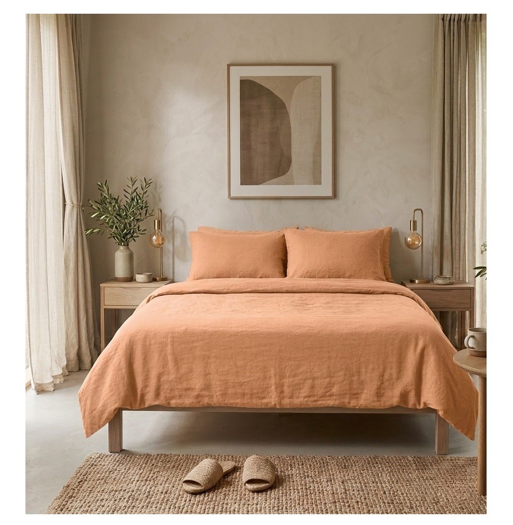 Apportez une touche douce et naturelle à votre chambre avec la parure de lit Floria 220 x 240 cm en double gaze de coton.