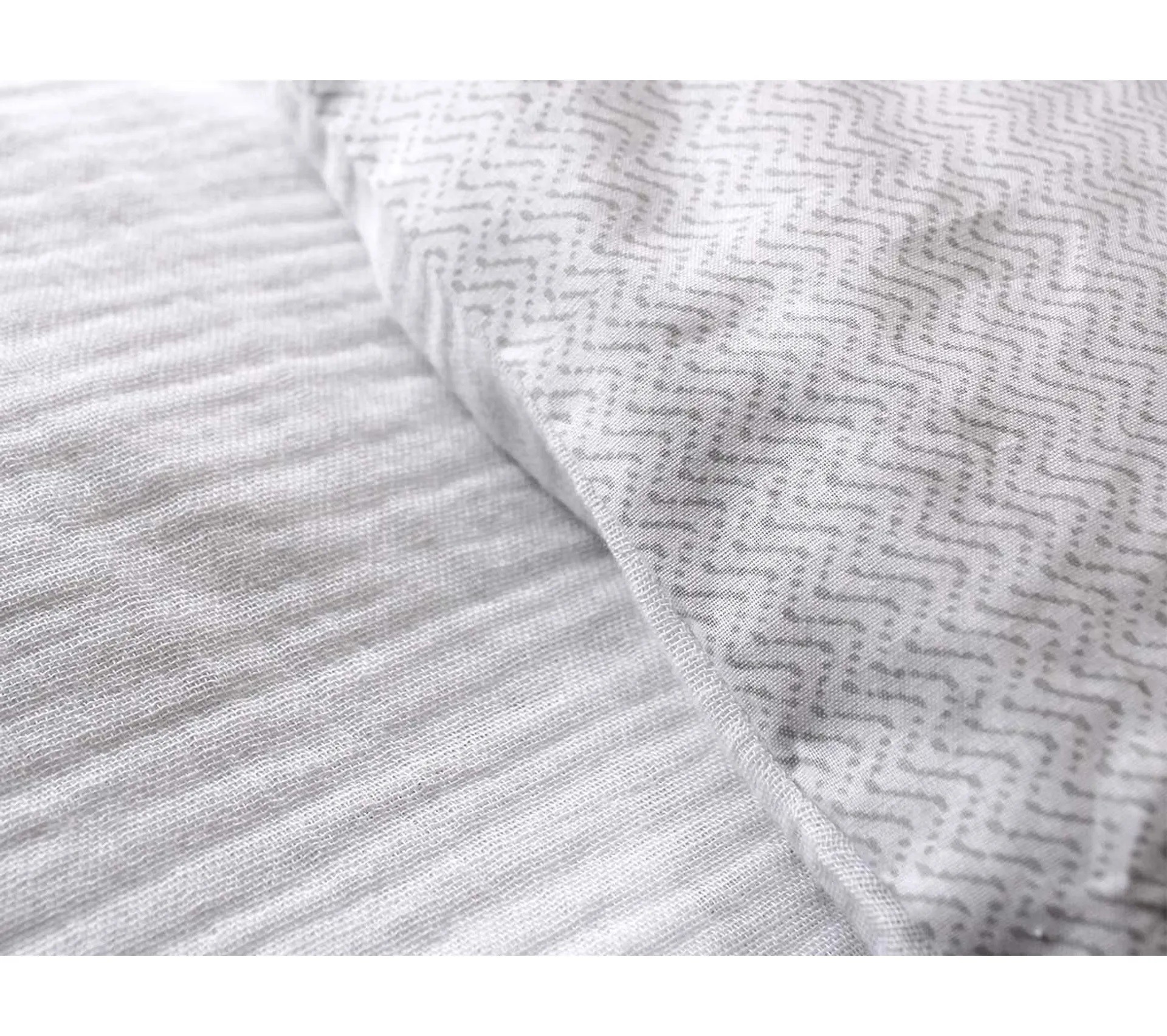 Design : Recto imprimé motif zig-zag verso en gaze de coton uni assorti