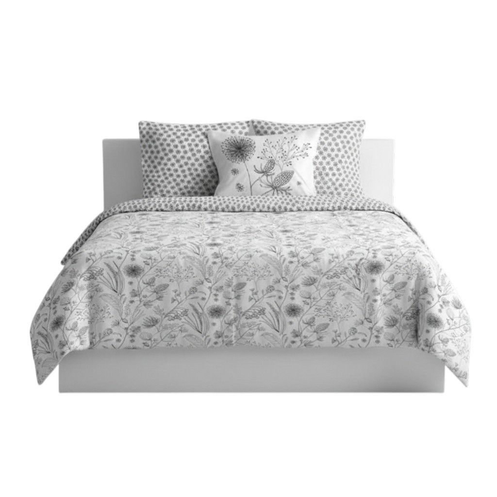 Invitez le calme et la sérénité dans votre chambre avec la parure de lit Herbia. Son motif floral fin inspiré de l’univers botanique dessiné en noir et blanc crée une atmosphère douce et élégante propice à la détente et au repos.