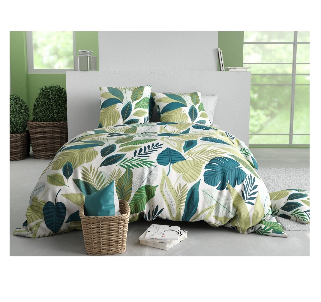 Housse couette + 2 taies 260 x 240 cm Feuillage tropicalia