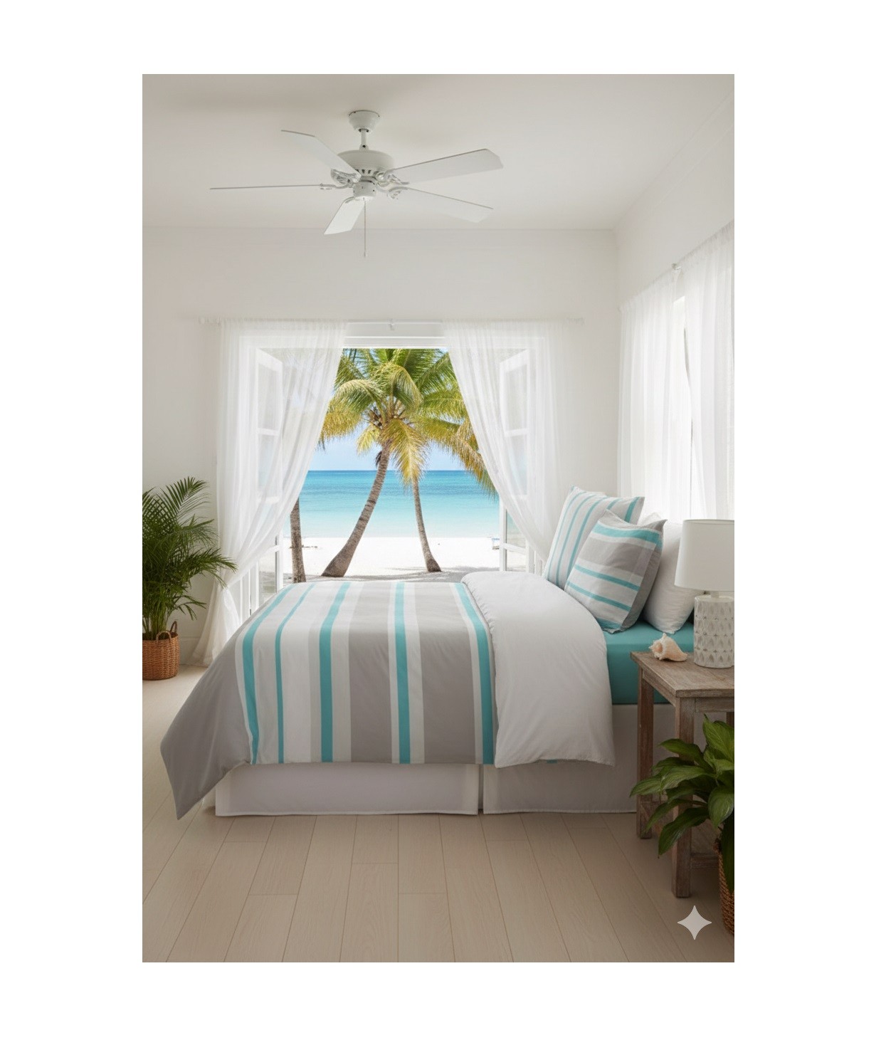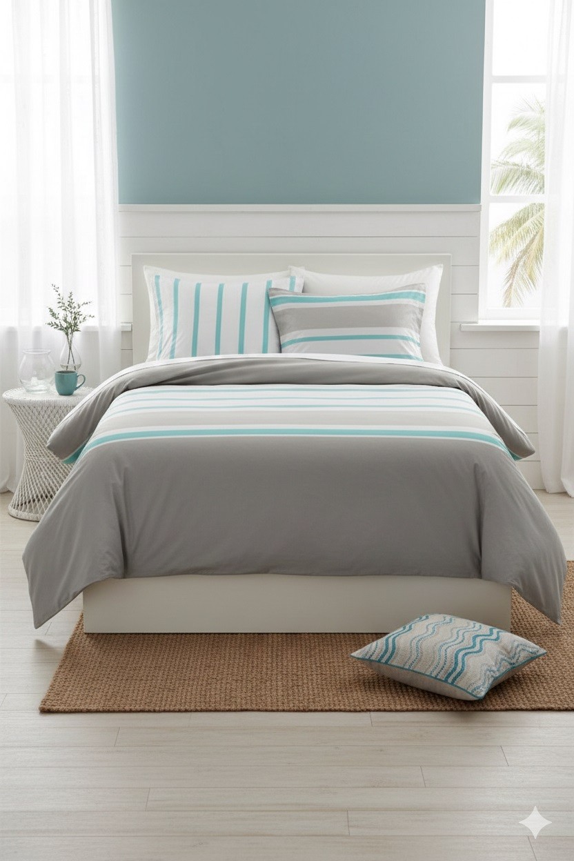 Apportez une touche douce et intemporelle à votre chambre avec cette parure de lit en coton 100 % habillée de rayures élégantes pour une ambiance à la fois naturelle et apaisante.