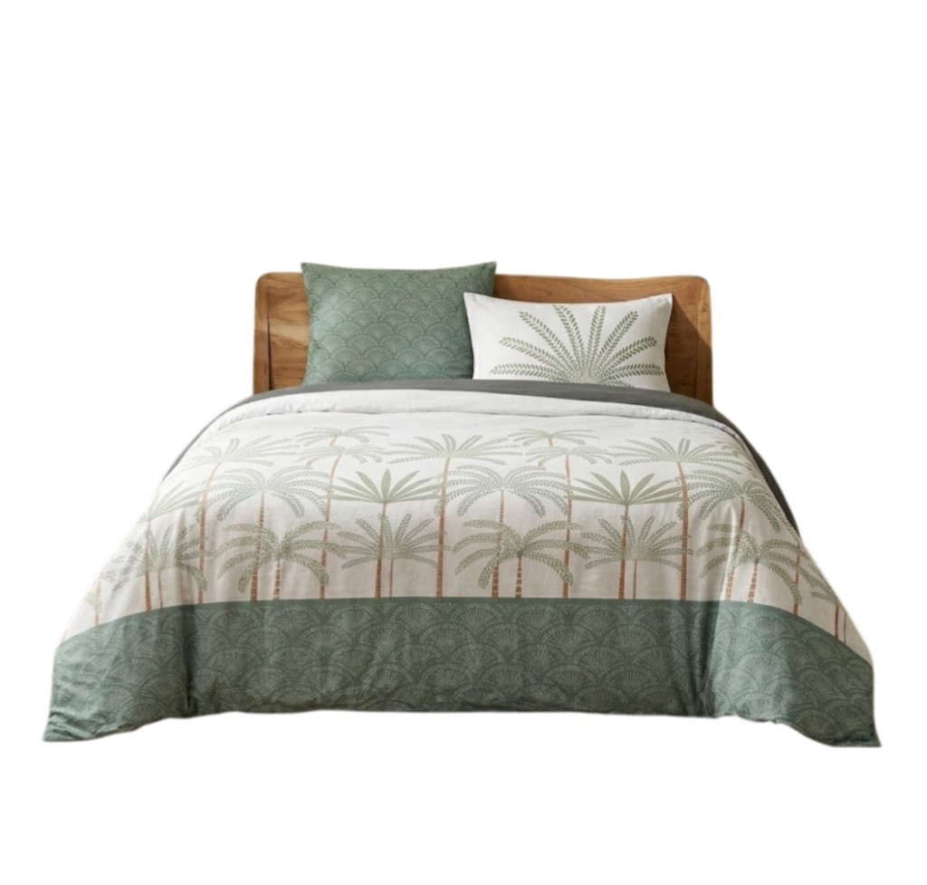 Évadez-vous le temps d’une nuit avec la parure de lit Sous les Palmiers.