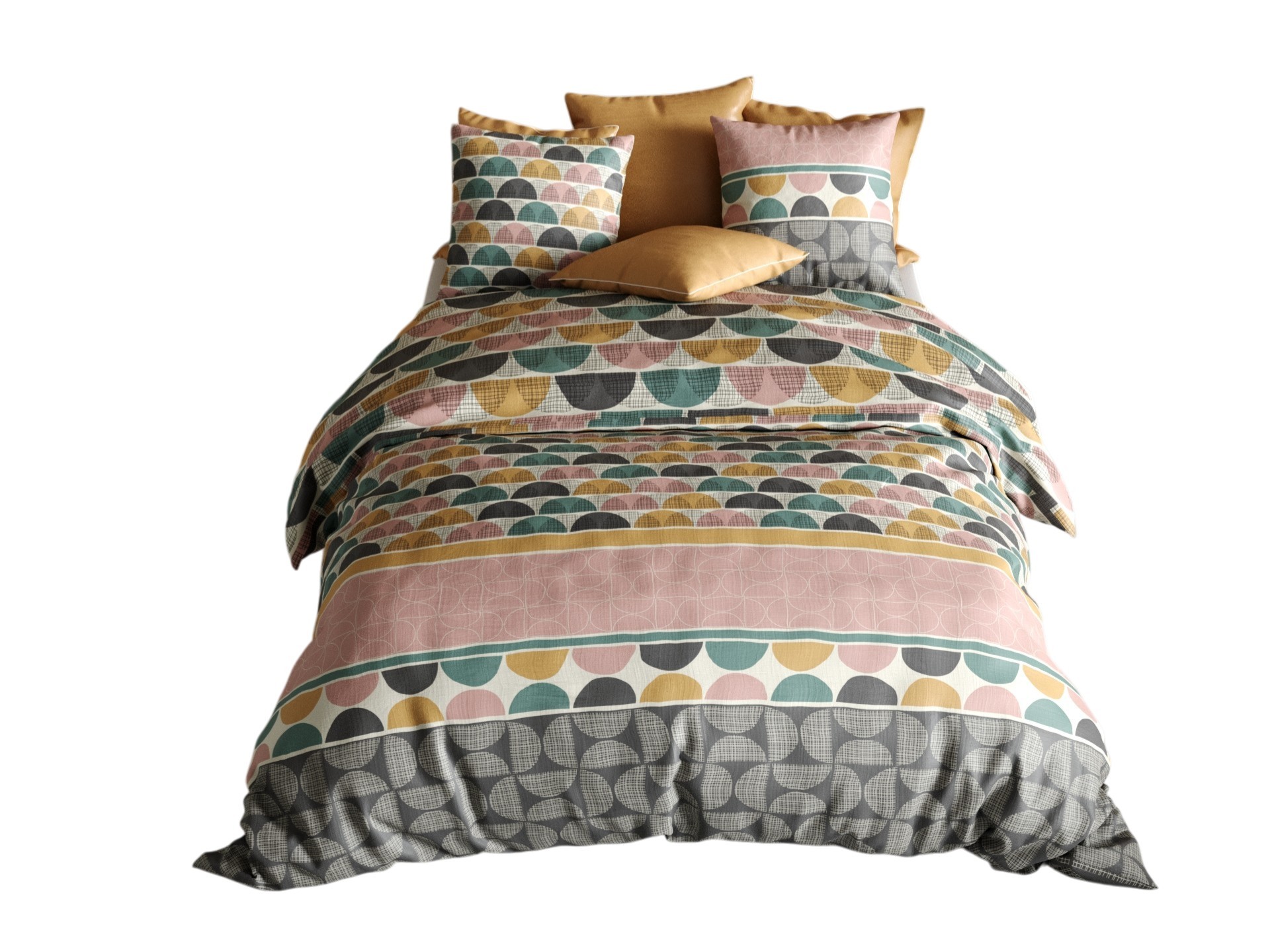 Confectionnée en 100% coton de qualité supérieure (57 fils/cm²) cette parure offre un tissu souple respirant et résistant pour un confort optimal en toute saison.