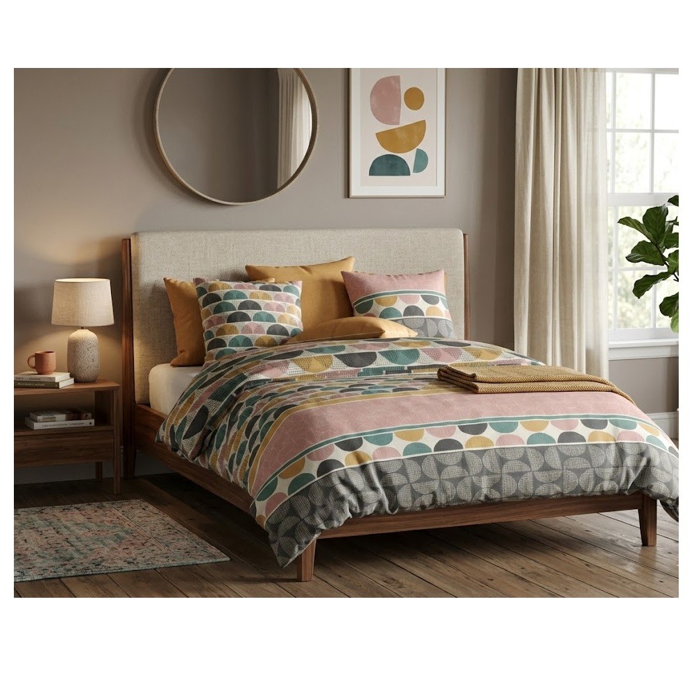 Son design multicolore moderne dynamise votre décoration tout en créant une atmosphère chaleureuse et élégante. Idéale pour un lit 2 personnes grande taille.
