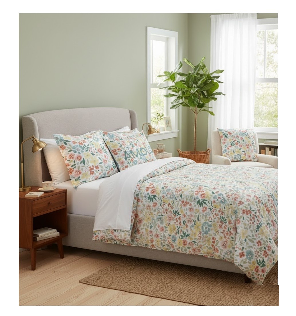 Son design floral intemporel s’intègre parfaitement dans une chambre adulte d’adolescent ou d’amis.