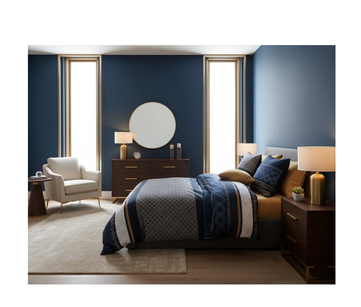 Apportez caractère et élégance à votre chambre avec la parure de lit Calypso. Son design graphique aux inspirations ethniques chic associe harmonieusement des motifs géométriques raffinés et des teintes profondes de bleu relevées par des touches de jaune et de blanc. Un style affirmé qui crée une atmosphère chaleureuse et contemporaine.