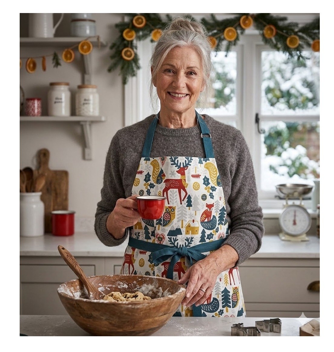 Un tablier aussi pratique qu’esthétique parfait pour cuisiner tout en ajoutant une note décorative hivernale à votre intérieur. Idéal aussi comme cadeau de Noël pour les amateurs de cuisine !