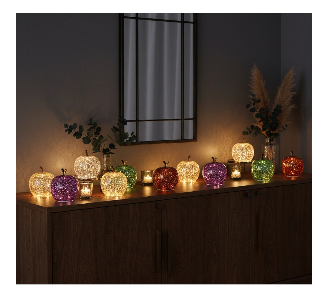 Apportez une touche chic et féérique à votre intérieur avec cette élégante pomme décorative en verre transparent illuminée de l’intérieur par une guirlande de 10 LED. Son verre effet craquelé diffuse une lumière douce et scintillante idéale pour créer une ambiance chaleureuse dans le salon une chambre ou sur une table de fête.