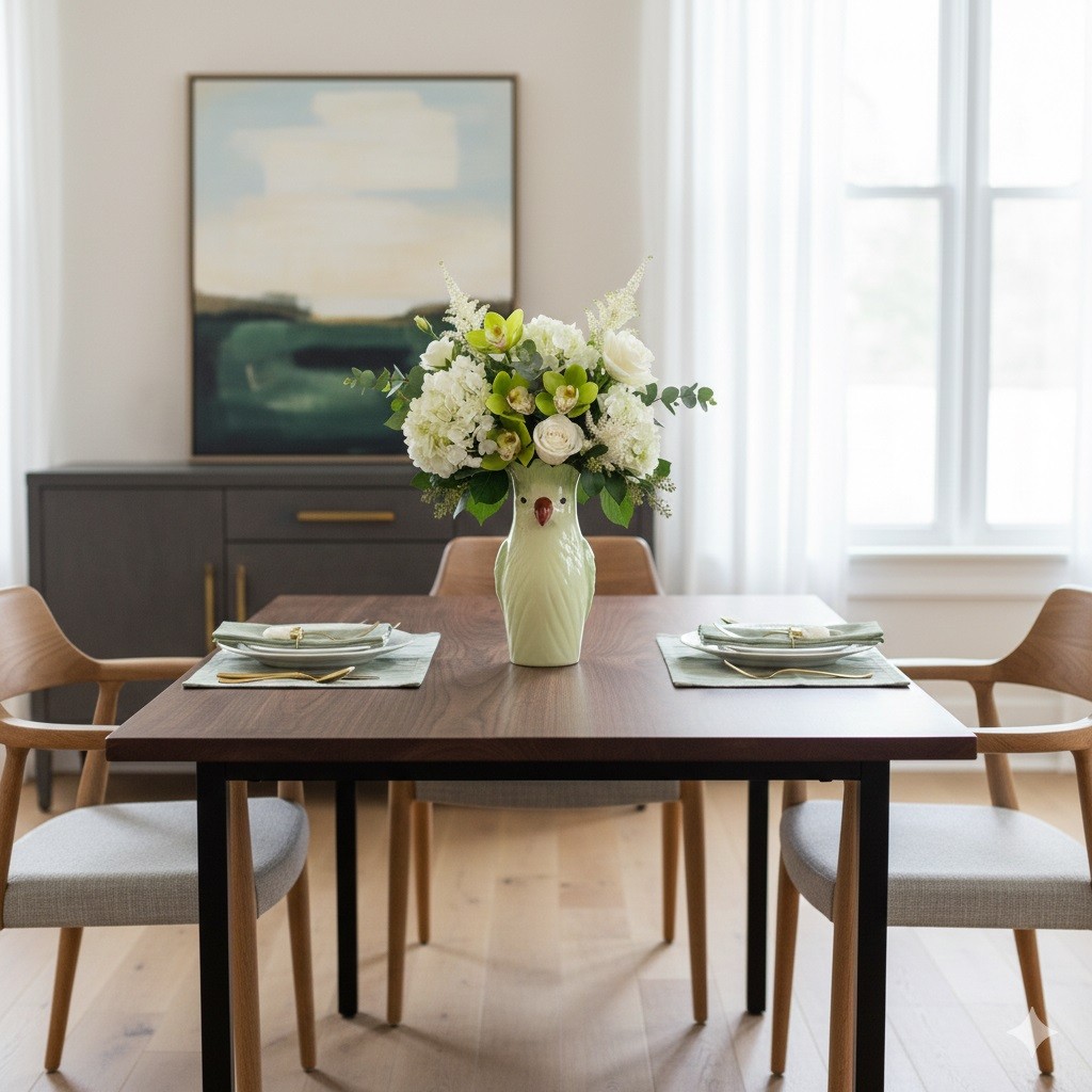Avec sa forme de perroquet stylisé ses détails en relief et sa finition brillante ce vase devient un véritable objet déco à part entière même sans fleurs. Il peut accueillir des fleurs séchées des tiges décoratives ou servir simplement de pièce maîtresse sur une table ou un meuble.